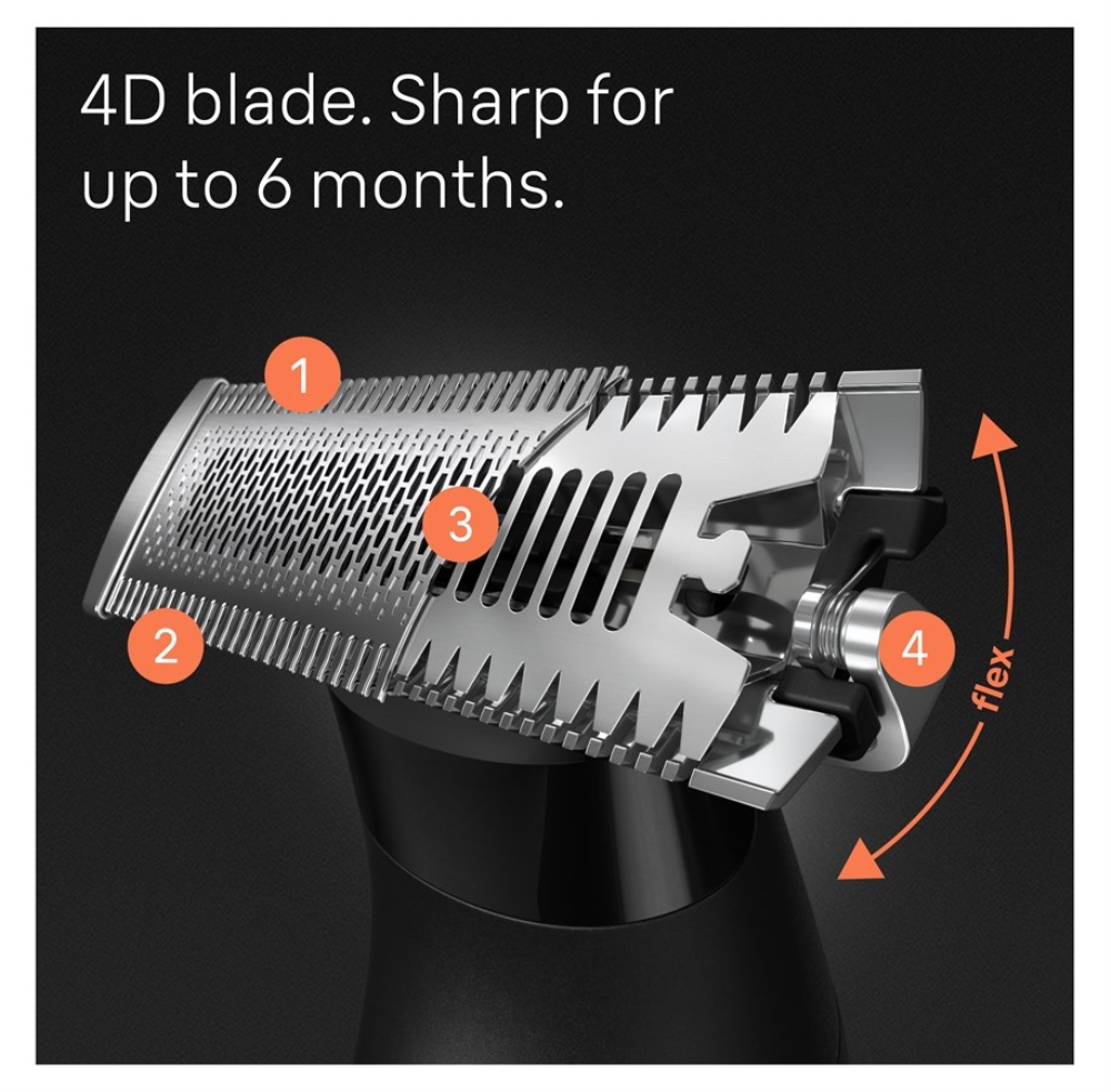 - Rápido y eficientela cuchilla 4D ahora tiene un área de corte 2 veces más amplia y realiza 450 movimientos por segundo