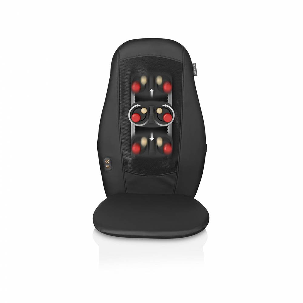 - El masajeador cuenta con 4 cabezales giratorios que se mueven a lo largo de la columna para proporcionar un masaje completo y relajante.