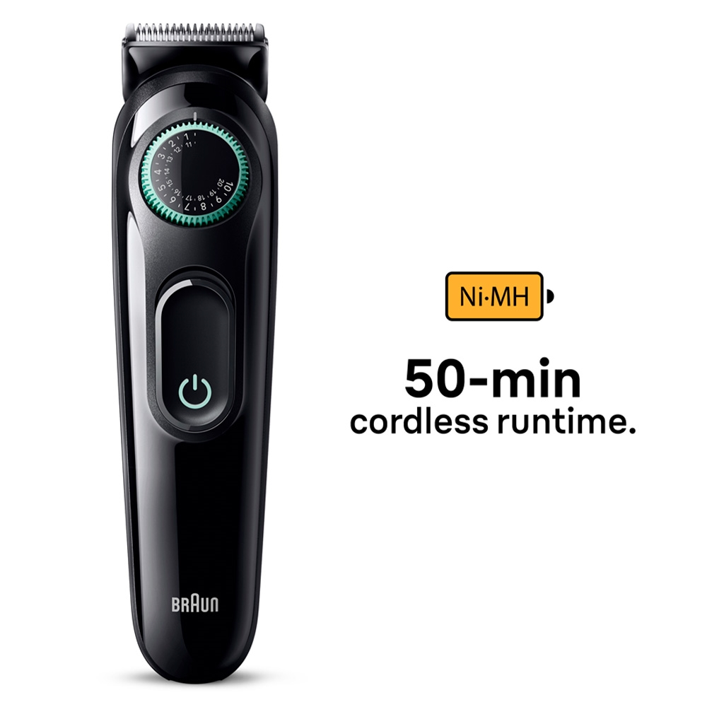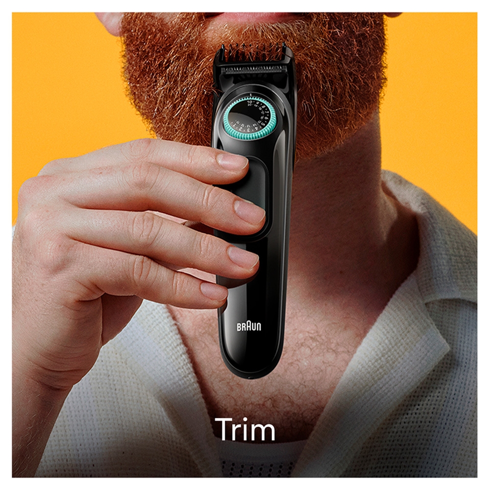 - Luce bien afeitado todos los díasmáxima precisión y 100 % de control con el recortador de barba Braun Serie 3
