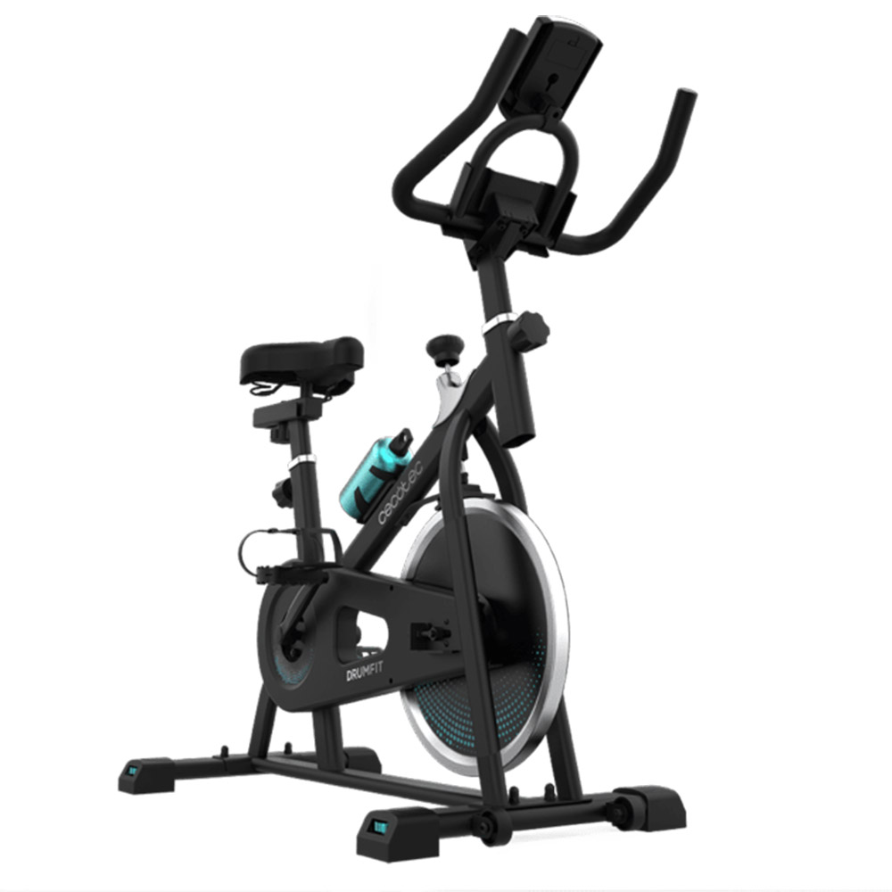 - Bicicleta indoor DrumFit Indoor 6000 Forcis con volante de inercia de 6 kg, resistencia manual, monitor LCD, soporte de dispositivos, botella, porta botellas y calapiés.
