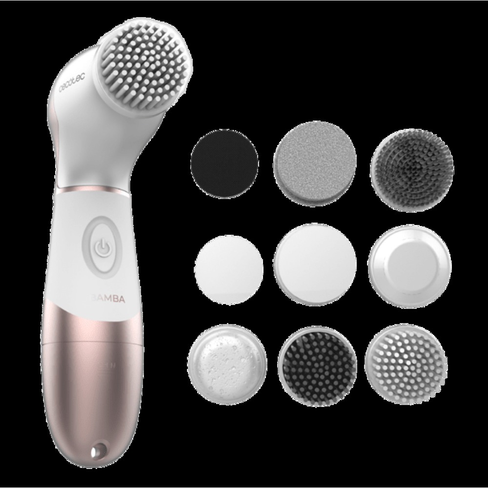 - 9 en 1el cepillo ofrece una gran versatilidad gracias a sus 2 cepillos faciales, 1 cepillo facialde silicona, 2 esponjas faciales, 3 limas, dos para pies y una para uñas y un cepillo corporal.