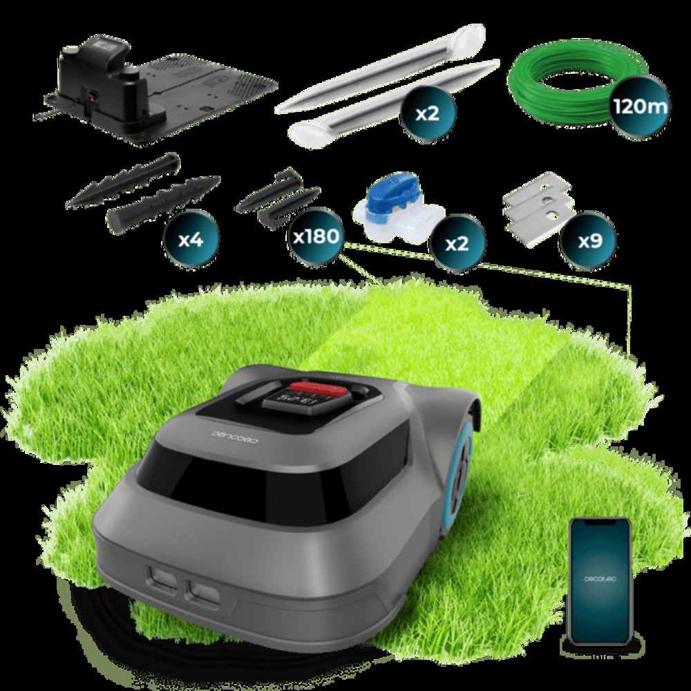 - Corta hasta 500 m² de césped de forma automática. Robot cortacésped inteligente que cuida tu césped, cubriendo hasta 500 m² de manera automática. Delimita el área de la zona con el cable perimetral, olvídate del robot y disfruta de un césped perfecto.
