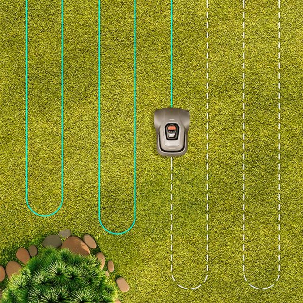 - Máxima precisión con rutas ordenadas y rápidas. Rutas eficientesoptimiza el tiempo del segado, creando rutas más eficiente que las de robots con navegación aleatoria.