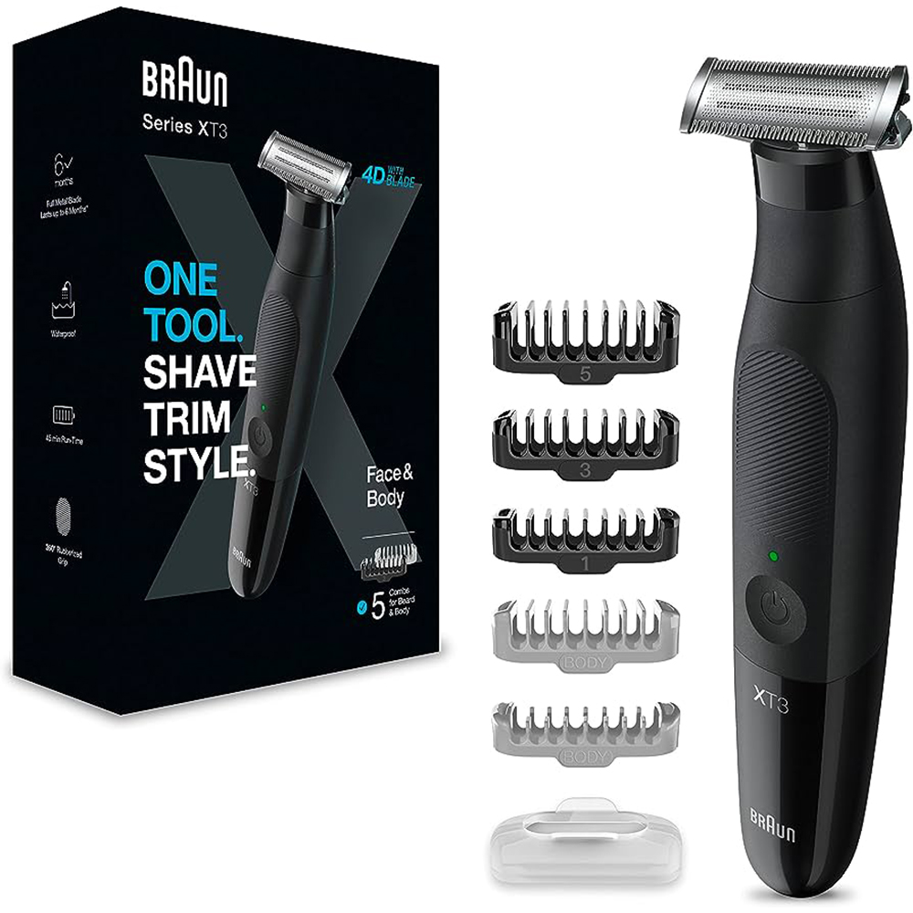 - Una herramienta. Recorta. Perfila. Afeita. Recortadora de barba, afeitadora para cuerpo y perfiladora para hombre. Para la cara (peines de 1, 2, 3, 5 mm) y el cuerpo (peines suaves y de 3 mm)