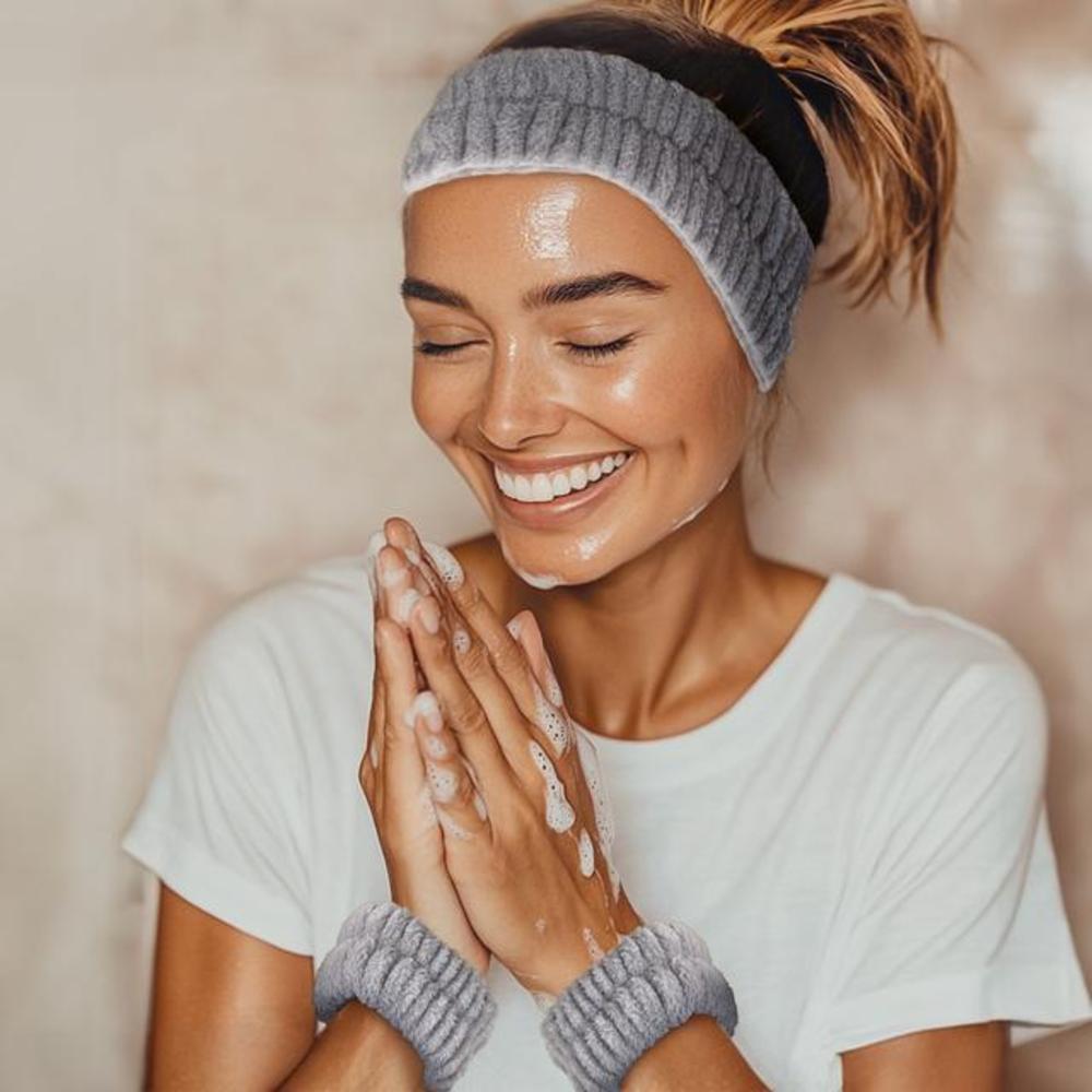 - Incluye un set de diadema y muñequeras para evitar que tus brazos y la ropa se mojen al realizar tuSkinCare Routine