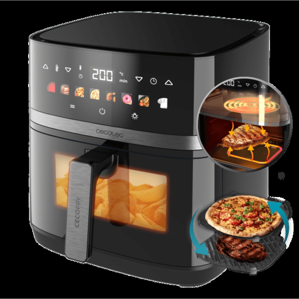- 3 en 1cocina todo tipo de platos. Cocina de todo con tu Cecofry gracias a su diseño que incorporafreidora de aire, grill para carne y plancha para prepara pizzas con masas perfectas.
