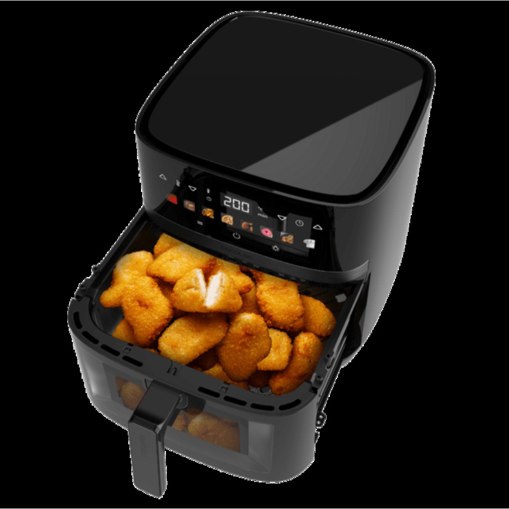 - Controla todo el proceso sin perder calor. La freidora permite controlar el progreso de tus elaboraciones sin necesidad de abrir la cubeta a través de su ventana de visualización.