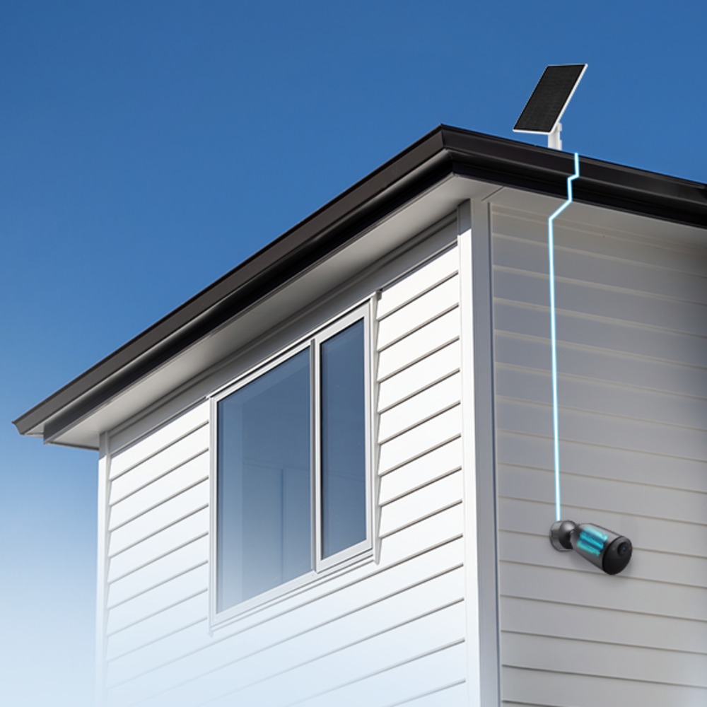 - panel solar de 5W de alta eficiencia. Confíe en este dúo perfecto para monitorear su propiedad las 24