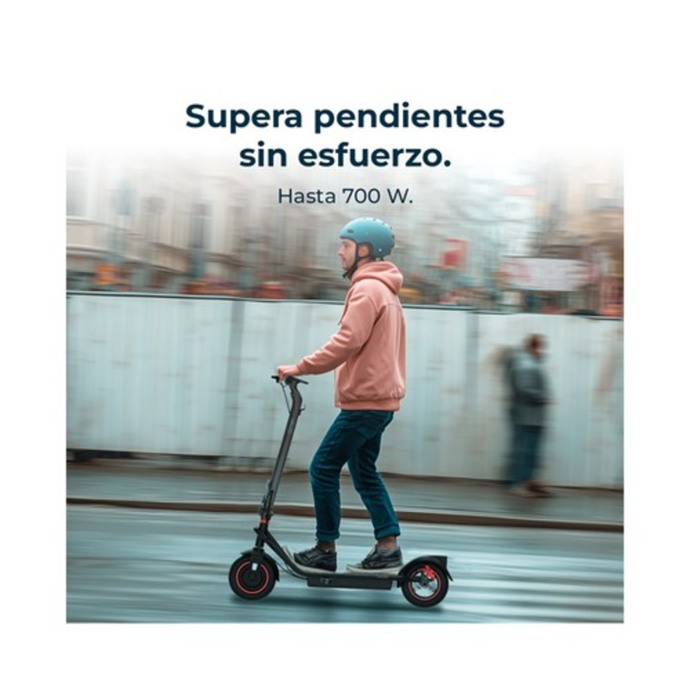- Gran agarre y adherencia. Ruedas inflables de 10" que permiten conducir por la ciudad de forma cómoda.