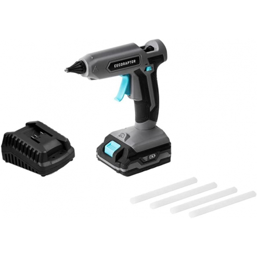 - Pistola de encolar con silicona caliente sin cables, con batería recargable de iones de litio de 20V y 2000 mAh, intercambiable con todas las herramientas de la serie CecoRaptor Perfect de 20 V.