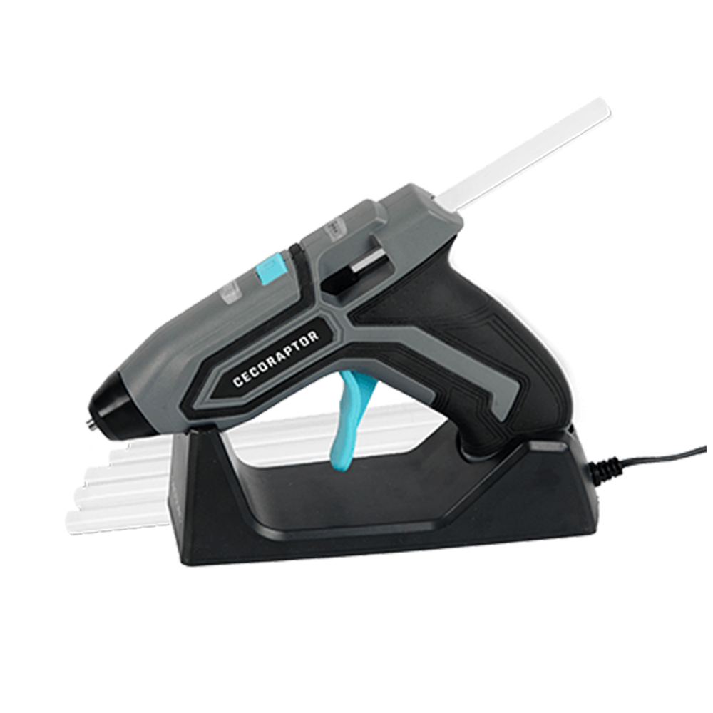 - Pistola de encolar con silicona caliente sin cables con batería recargable de iones de litio de 3,7V y 1500 mAh.