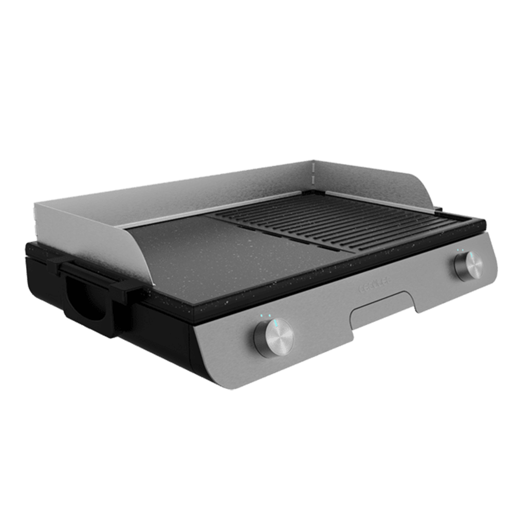 - Superficie mixta de grill y plancha para cocinar desde carne y verduras hasta huevos fritos, marisco o pescado.