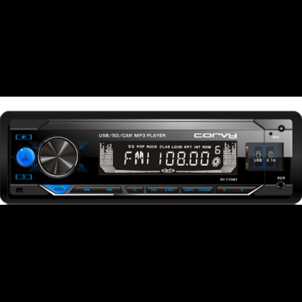 - Radio USB Corvy con amplificador interno de 4×65 W, doble entradas USB delantera y entrada auxiliarfrontal.