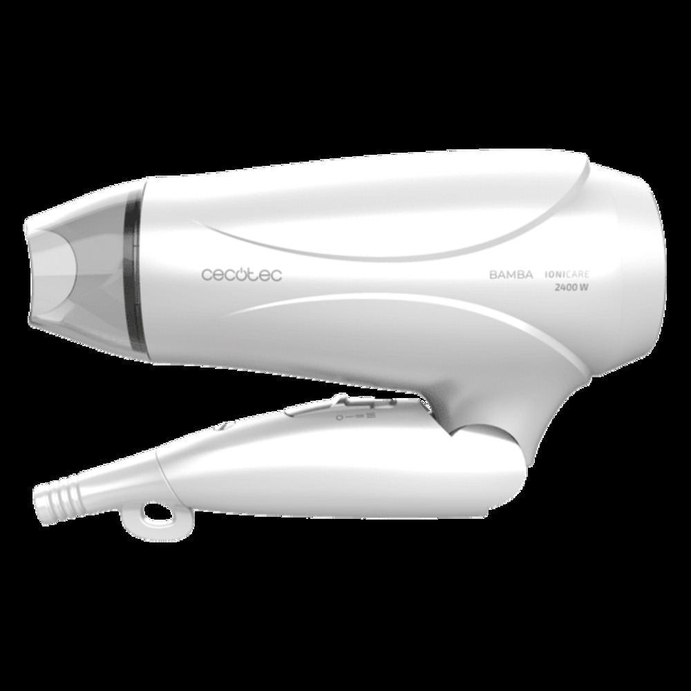 - Secador de pelo de viaje Bamba IoniCare TravelWhite de Cecotec con 2400 W de potencia, Con función ionizadora y gran caudal.