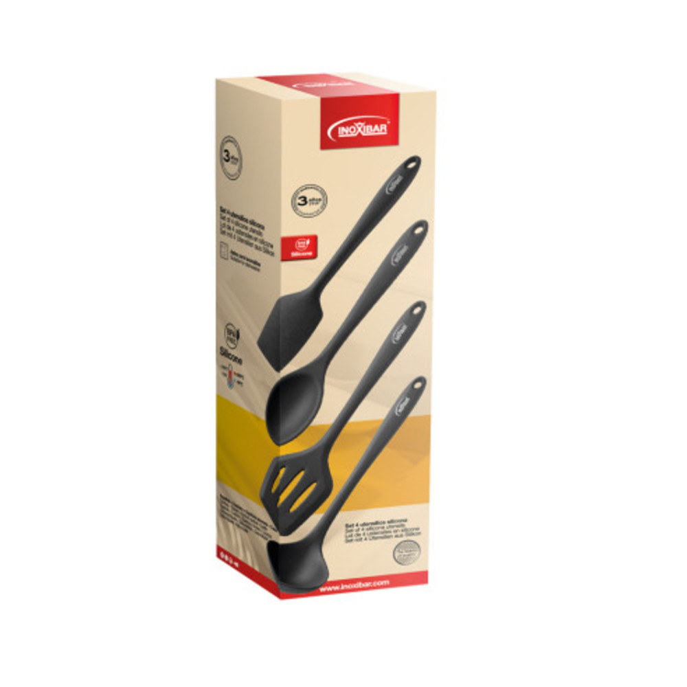 - Set de 4 utensilios de cocina con espátula. cuchara, espátula ranurada y cazo