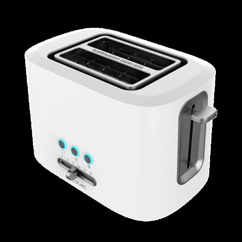 - Cecotec Tostadora Toast&Taste 9000 Double White de plástico con 2 ranuras cortas extraanchas. Diseño en blanco.