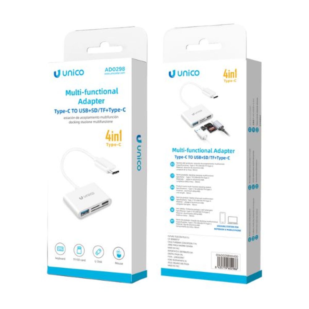 UNICO AD0298 HUB USB-C A+C+MICROSD/SD